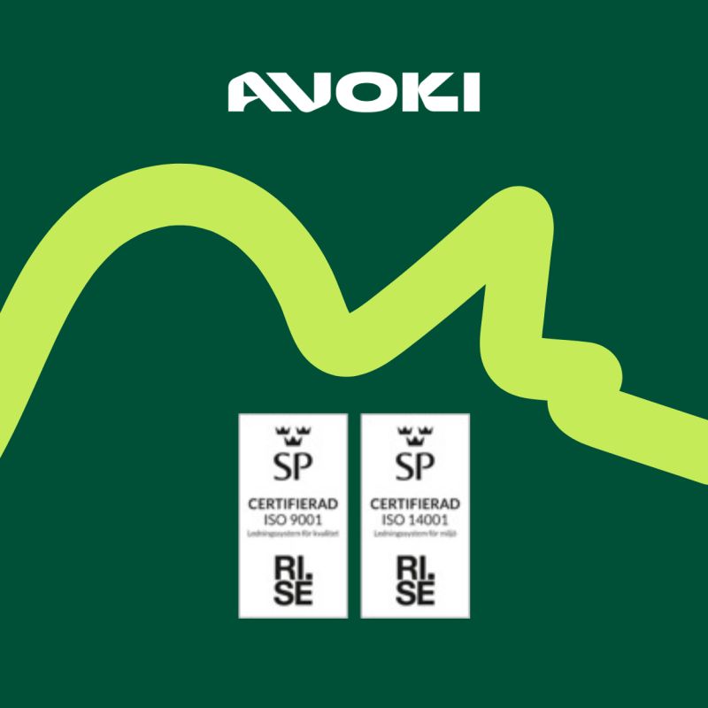 Avoki on uusinut kansainväliset ISO 14001- ja ISO 9001 -sertifikaatit seuraavaksi kolmeksi vuodeksi. Tämä ei ole pelkkä muodollisuus, vaan tärkeä tunnustus sitoutumisestamme ympäristövastuuseen, korkeaan laatuun ja jatkuvaan kehittämiseen kaikilla tasoilla.